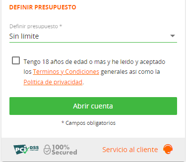 Para comenzar debes abrir la página oficial de Betsson, en la esquina superior derecha encontrarás un botón verde que dice “crear cuenta”. Presiona el mismo y serás redireccionado hacia otra página de la plataforma para continuar.