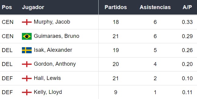 Estadísticas del Newcastle