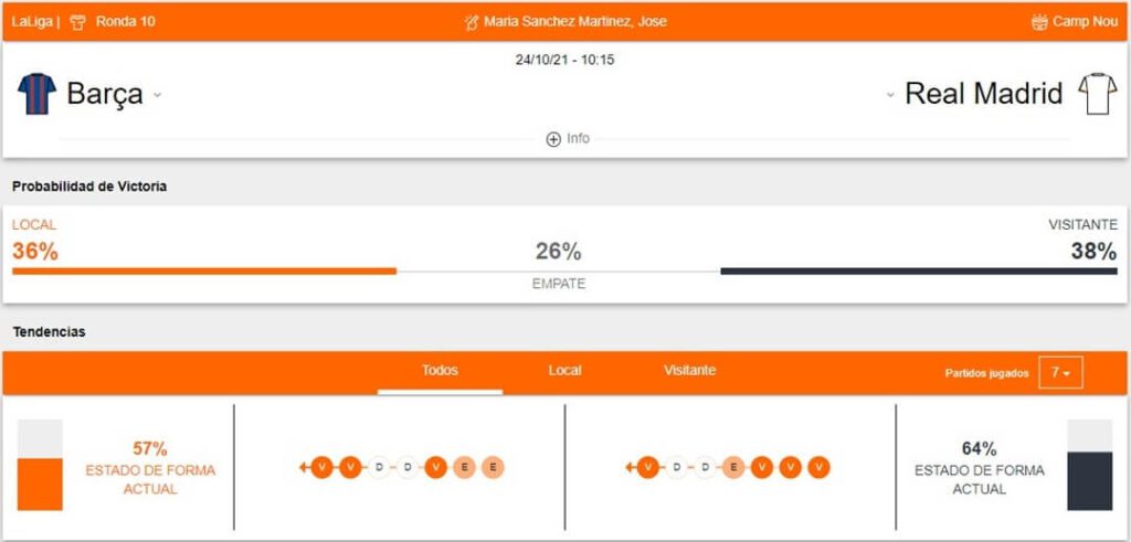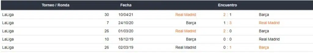 Datos y estadísticas para el partido Barcelona vs Real Madrid