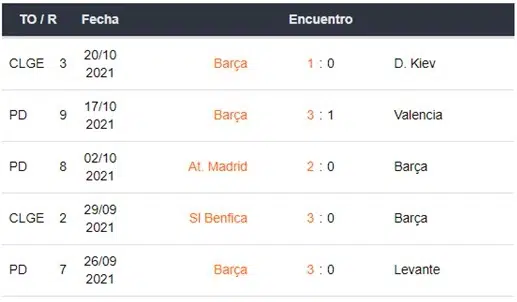 3 victorias y 2 derrotas es el récord del Barcelona en sus últimos 5 partidos. A continuación, te presentamos un resumen de cómo le fue en esos encuentros.