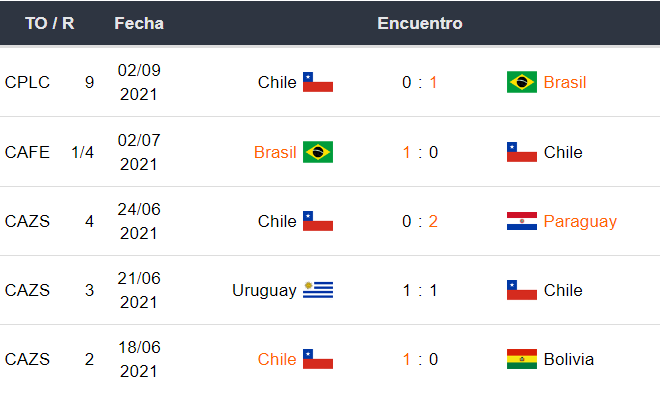 - Chile le ha ganado 4 partidos de los últimos 6 partidos.