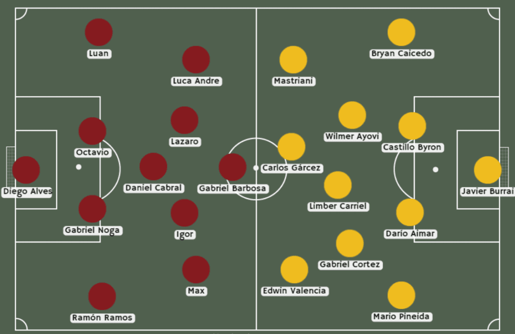 El Flamengo goleó 4 goles por 0 al Gremio en este partido de la Copa De Brasil. Flamengo dominó la pelota, la ofensiva y el flujo del partido.