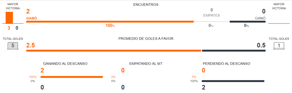 Para más información te traemos el histórico entre ambas oncenas, para ver como se comprtan entre sí las mismas.
