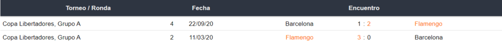 Datos y estadísticas para el partido Flamengo vs Barcelona